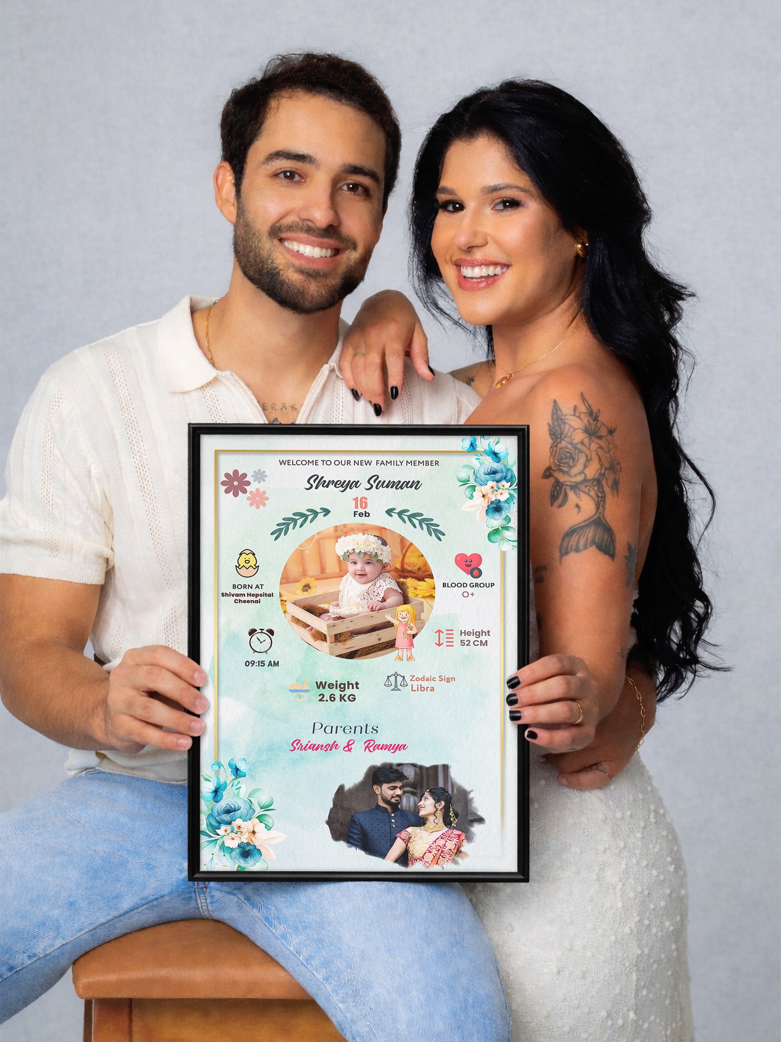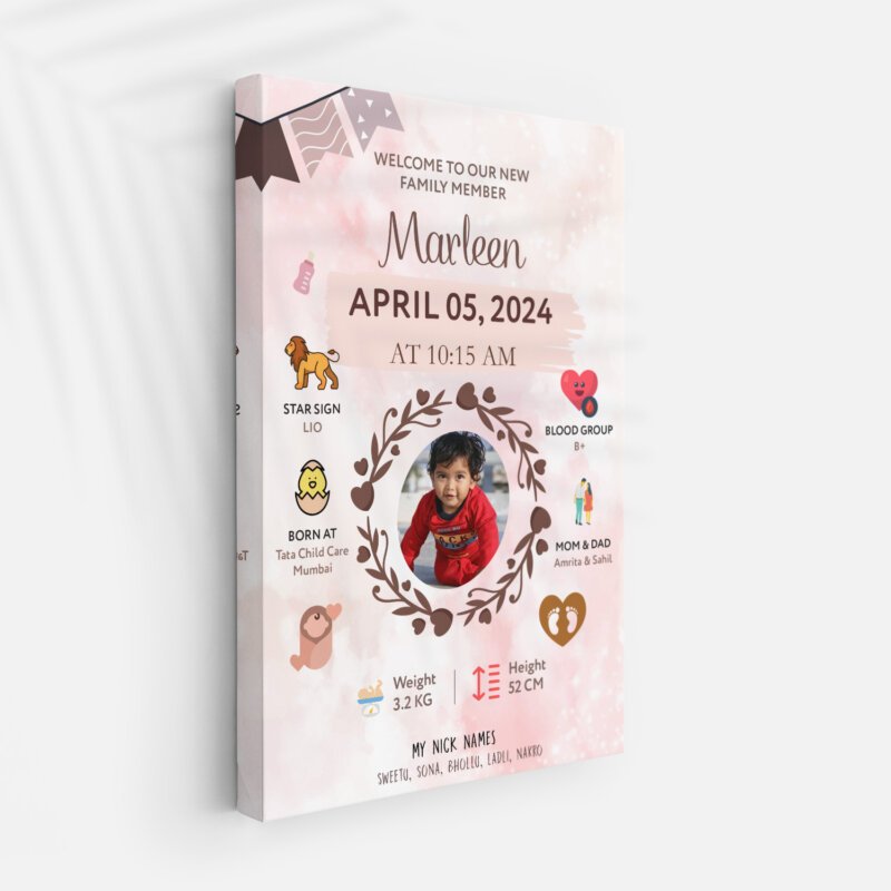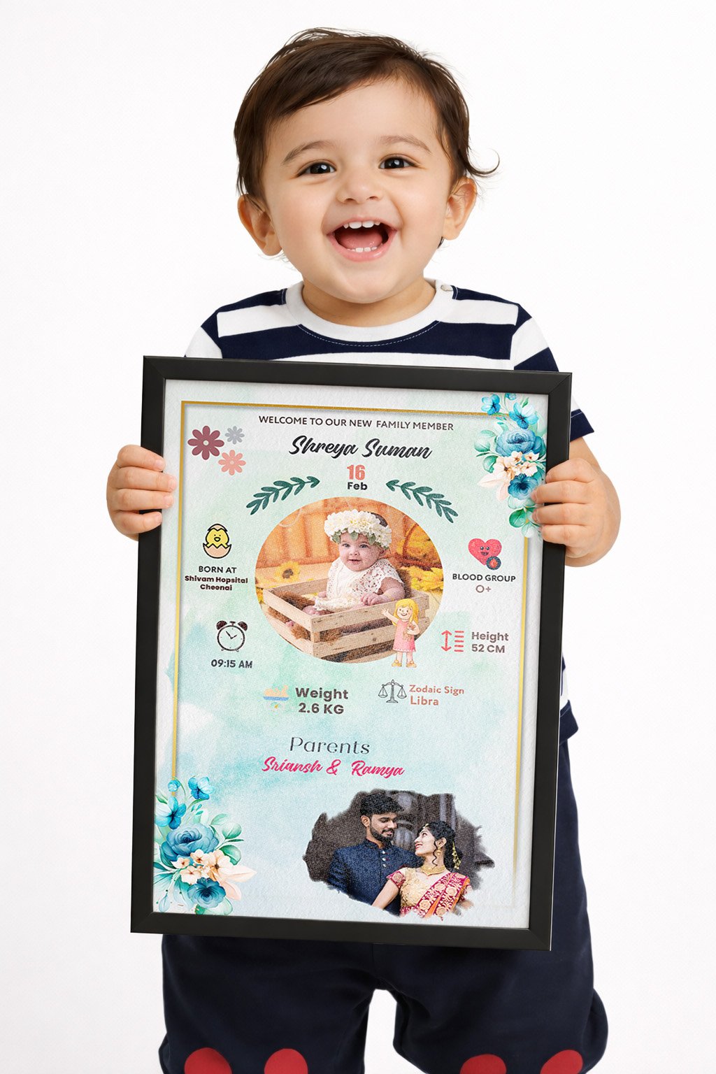 Newborn Birth Certificate Style Frame β Custom Baby Photo & Details