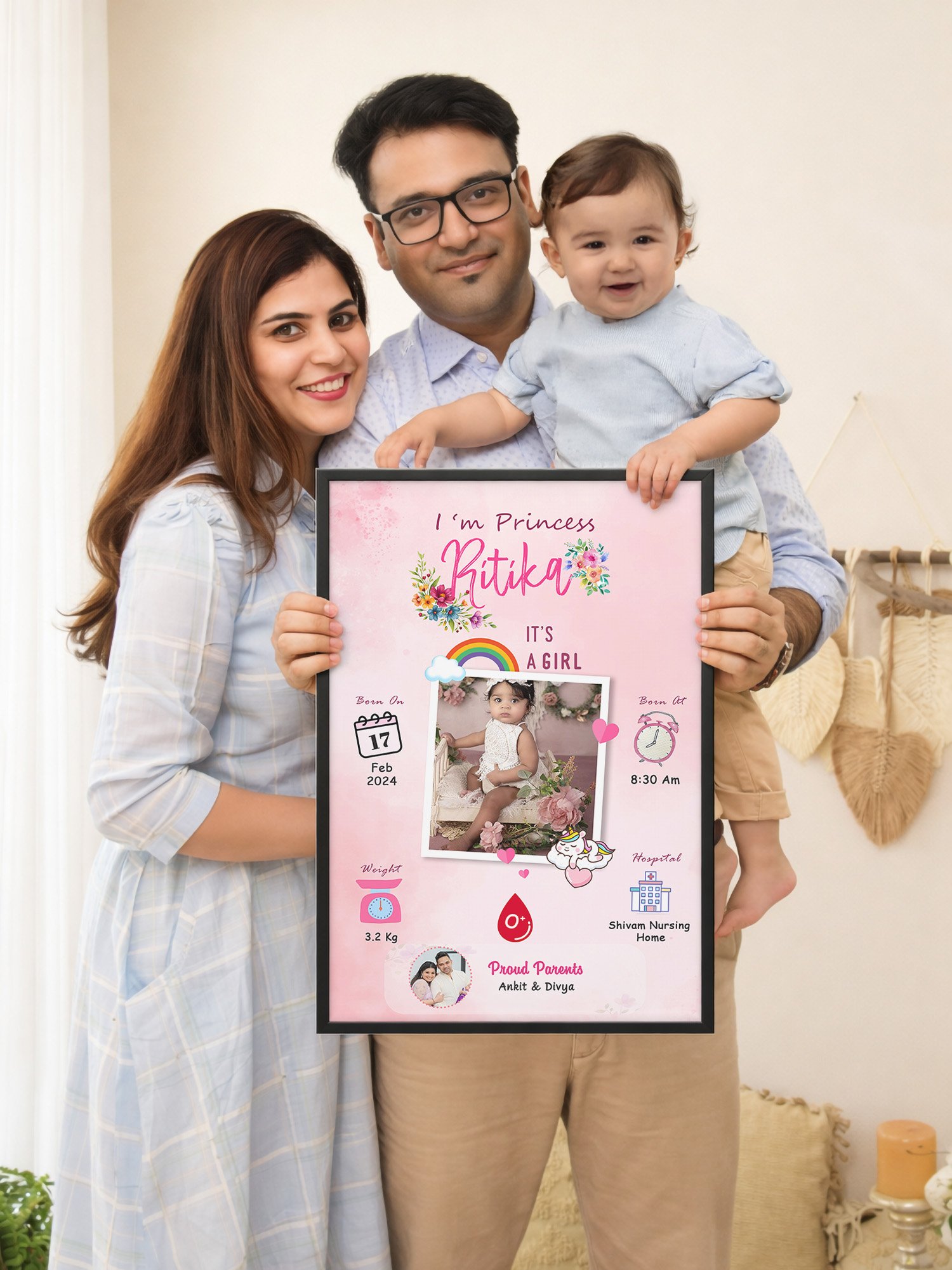 Custom Baby Birth Stats Photo Frame by BabyGatha β Personalized Newborn Collage Wall Art