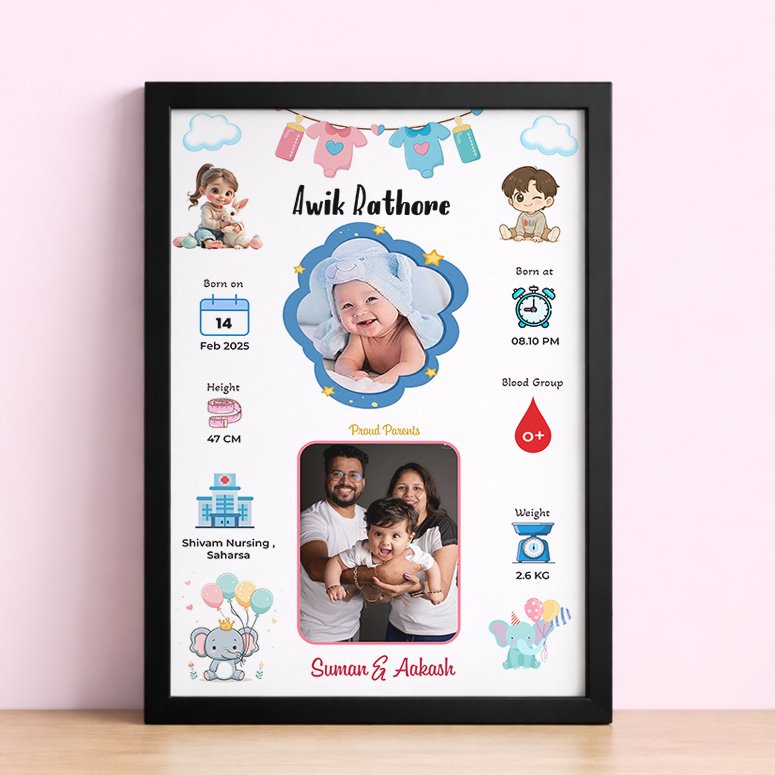 Explore our collection of custom baby birth frames, personalized birthday gifts, anniversary photo frames and much more — all made just for you.