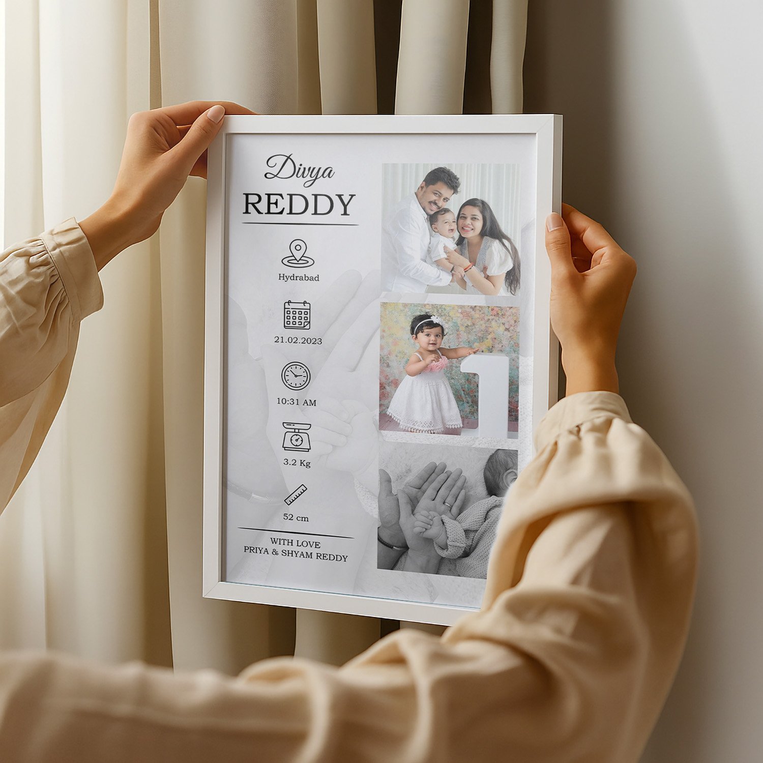 Personalized Baby Birth Details Photo Frame – Custom Newborn Name, Date, Time & Weight Wall Art